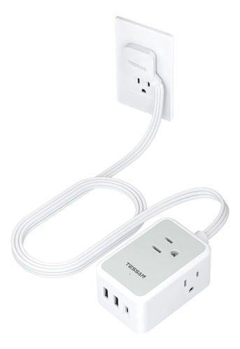 Cable de Extensión con Puertos USB: Este multicontacto pared usb de Ultra Delgado incluye 3 puertos USB para satisfacer tus demandas de carga multipuerto Los puertos USB-A duales pueden cargar hasta 2.4 A, y el puerto USB-C puede cargar hasta 3 A Ideal para teléfono celular, tablet, banco de energía, laptop, etc Nota: la salida total de puertos USB es de 5 V/3 A, 15 W máx