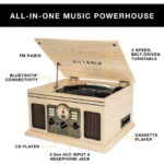 Victrola The Quincy 6-in-1 Bluetooth Record Player & Multimedia Center with Built-in Speakers – 3-Speed Turntable, CD & Cassette Player, Am/FM Radio, Wireless Music Streaming (Natural)