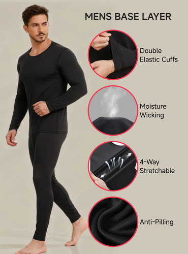 Absorbe la humedad: permanece seco y cómodo durante la actividad. El conjunto térmico para hombres absorbe el sudor y lo absorbe de tu piel, por lo que es la capa base adecuada para hombres para estilos de vida activos. Las térmicas para hombre son adecuadas para deportes como para uso casual