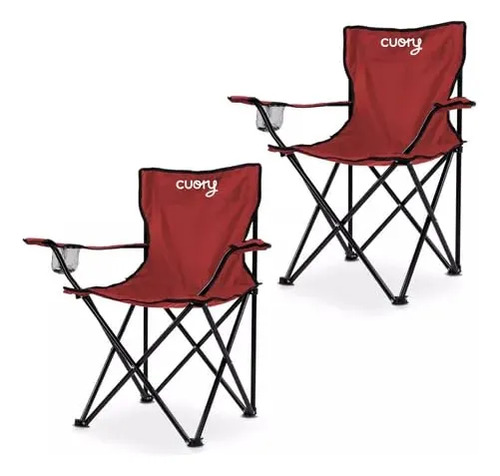 Set De 2 Sillas Plegable para Camping Jardin | Picnic Exterior Pesca Aire Libre De Lona Impermeable | Silla De Playa Portátil Ligera Portavasos | Rojo