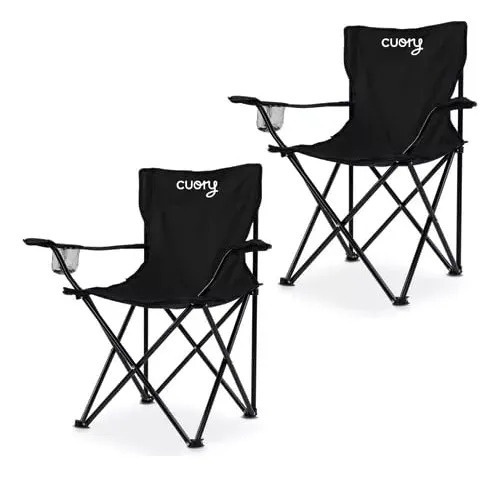 Set De 2 Sillas Plegable para Camping Jardin | Picnic Exterior Pesca Aire Libre De Lona Impermeable | Silla De Playa Portátil Ligera Portavasos | Negro