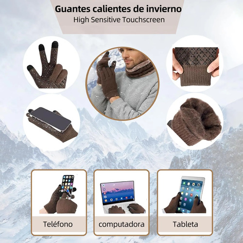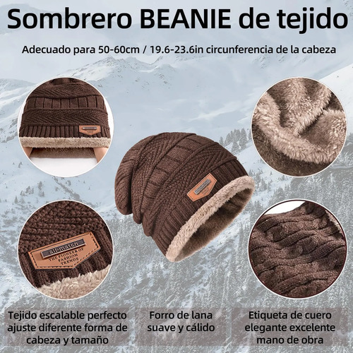 Conjunto de gorro, bufanda y guantes: Conjunto de gorro, bufanda y guantes con funda de bufanda con cierta elasticidad. Con una circunferencia de 21 a 23,6 pulgadas (53-60 cm), el gorro se ajusta perfectamente a la mayoría de las personas. Este conjunto de gorro, bufanda y guantes para hombre está diseñado para ayudarle a mantenerse abrigado durante los fríos meses de invierno. Las cálidas orejeras de felpa de punto trenzado mantendrán tus orejas calientes y tu peinado intacto.