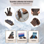 GUANTES CON PANTALLA TÁCTIL NO DESLIZANTE: Con tejido conductor de pantalla táctil en el pulgar y el índice, podrás manejar tus dispositivos electrónicos sin quitarte los guantes, ¡pero está pensado para un uso sencillo y no es tan sensible como nuestros dedos Además, los guantes de invierno están equipados con silicona en la palma, que es antideslizante y resistente al desgaste, y duradera.