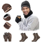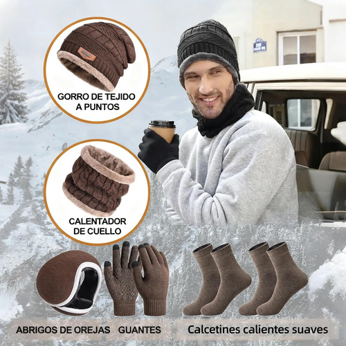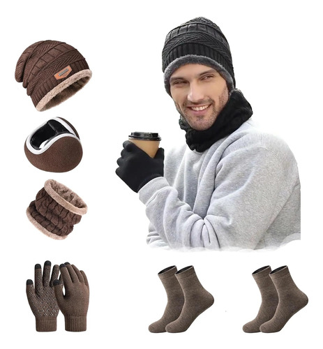 CONJUNTO DE 6 PIEZAS PARA EL INVIERNO: El conjunto de invierno para hombre incluye un gorro, un protector de cuello, orejeras, guantes con pantalla táctil y dos pares de calcetines. El interior del conjunto de invierno está forrado con forro polar térmico, que añade calidez al conjunto y lo hace cómodo de llevar en climas fríos.