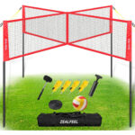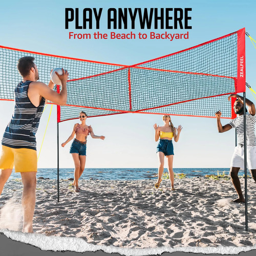 Set de juego de voleibol 4 Square de ZEALFEEL, red de voleibol de 4 vías ajustable en 3 alturas con voleibol, bomba, bolsa de transporte, martillo, red de 4.27 m para 4 personas para jardín, playa