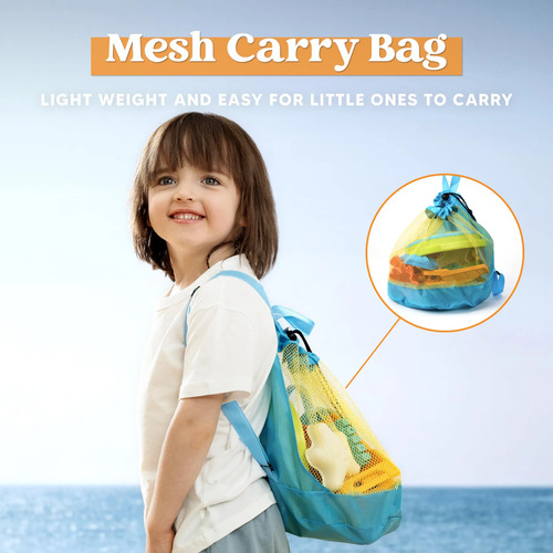 Magia de la bolsa de malla: mantén los juguetes de playa bajo control con la bolsa de transporte de malla incluida, promoviendo una fácil limpieza y evitando que cualquier artículo se deje atrás.