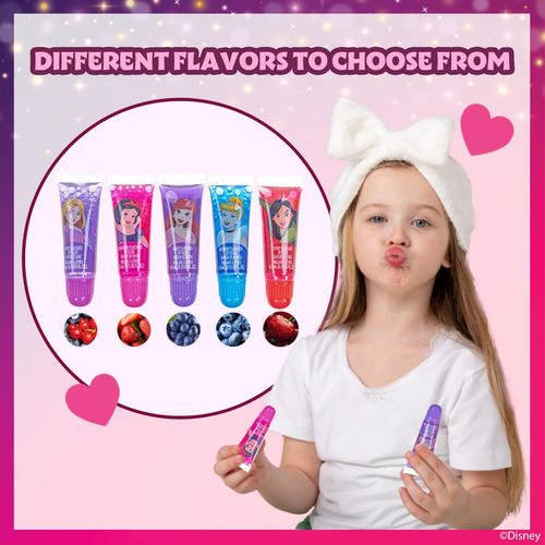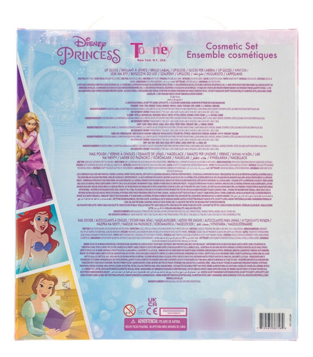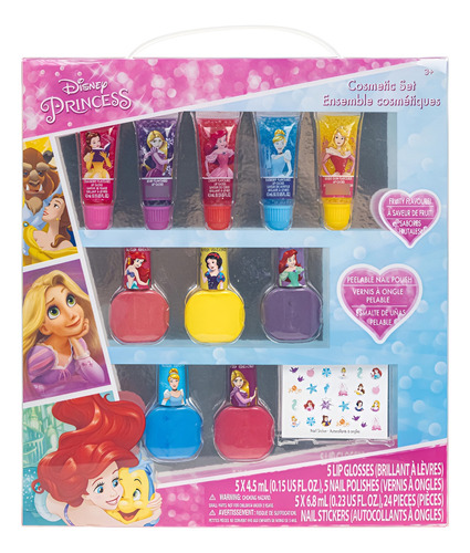 Disney Princess Conjunto de maquillaje cosmético brillante para niñas con etiquetas de esmalte de uñas de brillo labial 11 piezas perfectas para fiestas Townley Girl