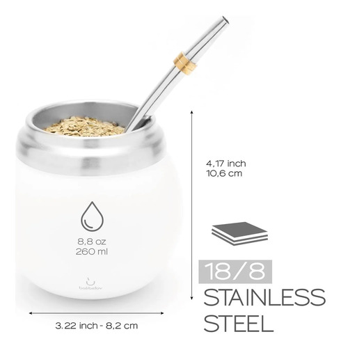 Calidad prémium: nuestro juego de té de mate de calabaza yerba mate, diseñado con inspiración en el mate de calabaza tradicional, incluye dos bombillas de acero inoxidable y un cepillo de limpieza. Fabricado con acero inoxidable 18/8 de alta calidad y aislamiento de doble pared, mantiene tus bebidas calientes o frías durante horas. Contiene 210 ml para tu disfrute es compatible con el soporte del coche.