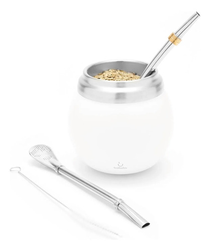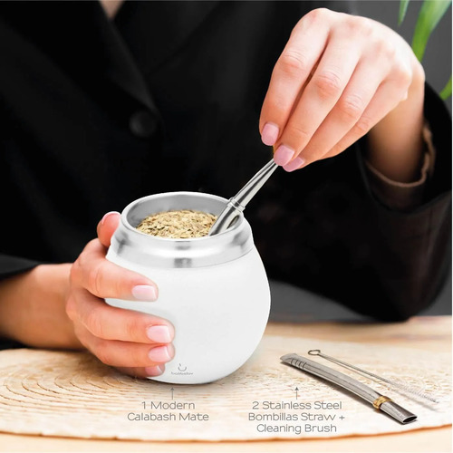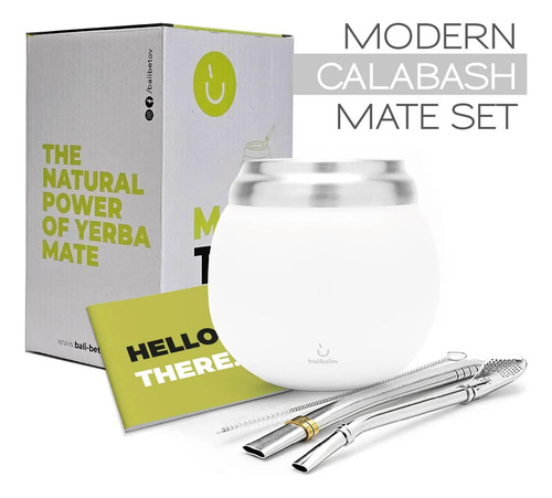 BALIBETOV Yerba Mate Kit – Incluye juego de tazas y bombillas Yerba Mate – Juego de calabazas térmicas y bombillas de doble pared de acero inoxidable, fácil de limpiar y mantener (blanco)