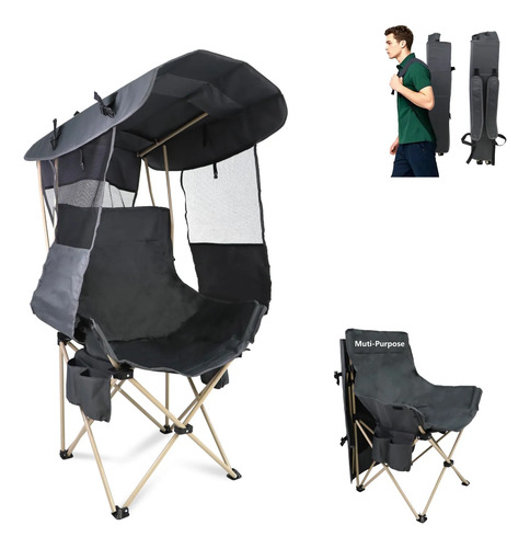 Sillas de Camping Plegables con Dosel al Aire Libre: Silla de Playa Portátil con Dosel – Sillas de Playa con Sombrilla para Adultos – Silla de Camping con Sombra para Pesca y Campamento de Resistencia