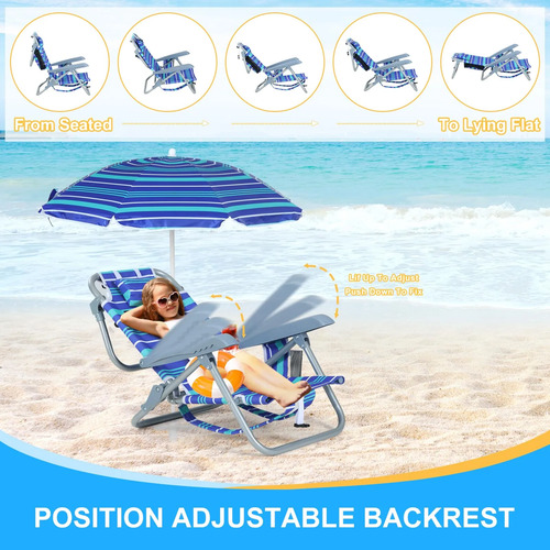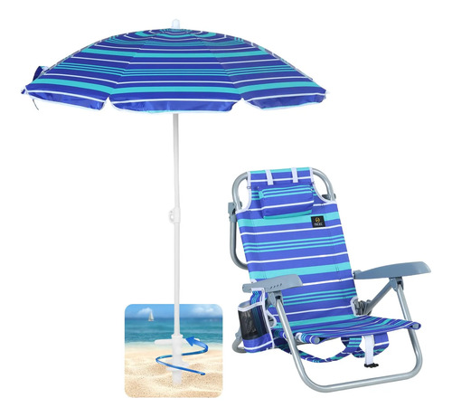 Nice C – Silla de playa para niños pequeños, silla de playa con paraguas, mochila plegable para playa, sillas de camping, 5 posiciones reclinables, con soporte para tazas, para playa, camping, picnic