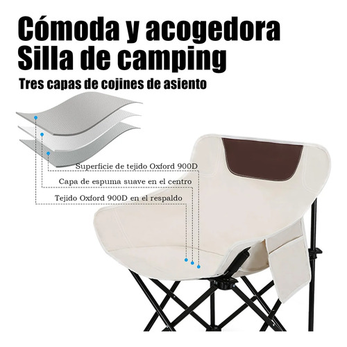 — Fabricadas con tejido Oxford 900D de alta densidad -, el asiento y el respaldo están totalmente tapizados para proporcionar un alto nivel de confort y una experiencia de asiento de primera calidad. Las sillas de camping son resistentes y duraderas, soportan el desgaste y no se rompen con facilidad.