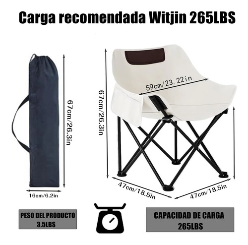 Sé el primero en valorar “Silla Plegable Camping Ergonómica 265 Libras Bolsa Transport Blanco”
