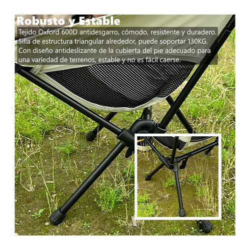 Robusto y Estable: Tejido Oxford 600D antidesgarro, cómodo, resistente y duradero. Silla de estructura triangular alrededor, puede soportar 130KG. Con diseño antideslizante de la cubierta del pie adecuado para una variedad de terrenos, estable y no es fácil caerse.