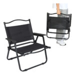 Silla Plegable de Camping,Estructura de Acero Resistente y Asiento de Lona Impermeable,Silla Plegable PortaTil para Exteriores con Descansabrazos para Jardín Playa o Exteriores Tipo Camping,Negro