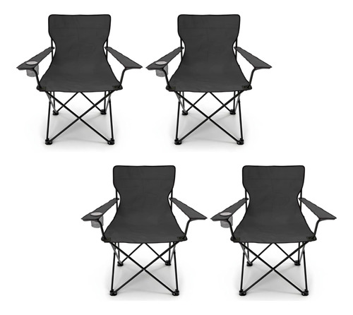 ROSS & SAKS Silla Plegable para Camping, Set de 4 pzas – Estructura Reforzada y Portátil, Lona Cómoda, Ideal para Viajes, Exterior, Playa y Pesca, Fácil Transporte, Incluye Portavasos y Funda, Negro