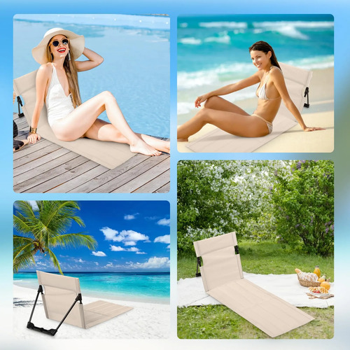 DISEÑO PORTÁTIL: Nuestra silla de piso portátil con respaldo está diseñada para ser ligera y fácil de transportar. Puede llevarla sin esfuerzo a la playa, a la piscina o incluso a su propio jardín. Maximice su relajación al aire libre con nuestras sillas de playa plegables portátiles.