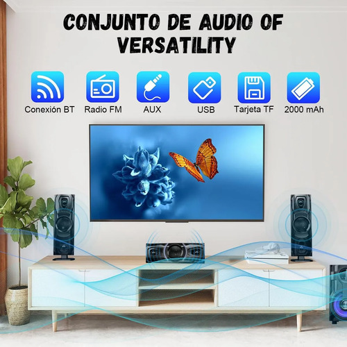 Conexión Versátil 4 en 1, Compatible con Sistema de Sonido para Casa y Múltiples Dispositivos – Integrando sistema de sonido para casa y teatro en casa, el DM Y15 soporta BT 5.4, SD, AUX y USB, muy práctico para diferentes escenas. Conecta el BT 5.4 a tu teléfono para escuchar música mientras cocinas o relajas en el sofá conecta AUX a la TV para teatro en casa con tu familia conecta USB o SD a la PC para juegos o trabajo. Es compatible con TV (subwoofer para tv) y PC (subwoofer pc), sin cortes de audio y calidad sin pérdida, haciendo tu sistema de sonido para casa más versátil.
