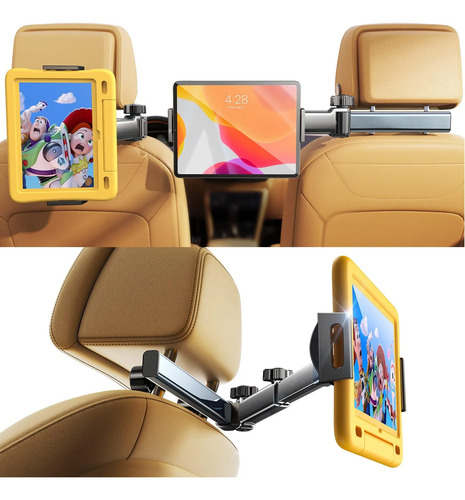 Contenido de la caja : 1 soporte para iPad para asiento trasero de coche, 1 abrazadera de tablet de 4.7 a 11 pulgadas, varillas compatibles para reposacabezas de 0.4 pulgadas (10 mm) a 7.2 pulgadas (185 mm). No se puede ajustar al asiento trasero sin varillas de reposacabezas, como Volvo Chevrolet Tahoe, GMC Yukon, Jeep Wagoneer, Jeep Grand Wagoneer, Honda Pilot, Honda CR-V, Chevrolet Silverado. y y GMC Sierra Sierra