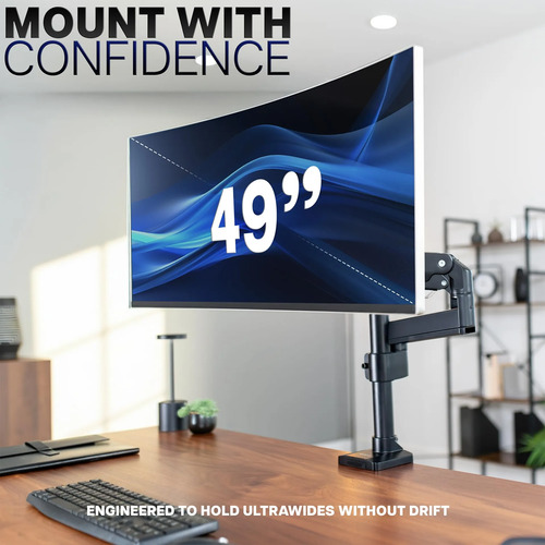 VIVO Brazo de Monitor de Aluminio para Monitores Ultrawide de hasta 49 pulgadas 33 libras, Montaje Simple de Escritorio, Neumático, Negro STAND-V101GT