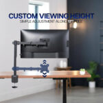 Articulación y ajuste de altura: el brazo ajustable ofrece inclinación de 90o a -90o, giro de 360o, rotación de 360o y ajuste de altura de hasta 16 pulgadas a lo largo del poste central. El monitor se puede colocar en orientación vertical u horizontal