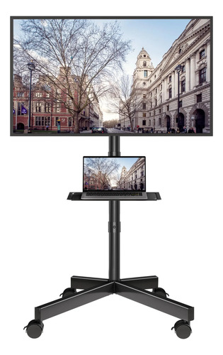 BONTEC Soporte con Ruedas para TV de 23 a 60 Pulgadas de LCD/LED, Inclinable Soporte de Pie con Estante para Portátil, Móvil con Altura Ajustable de hasta 25 kg, Máx VESA 400×400 mm