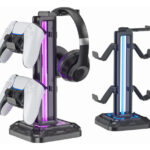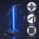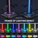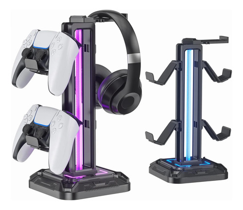 KDD Soporte de Auriculares con 9 Modos de Luz – Soporte de Mando de Juego para Escritorio – Soporte de Auriculares Giratorio y Gancho de Mando Desmontable para Juego PC Xbox PS5 de Auriculares