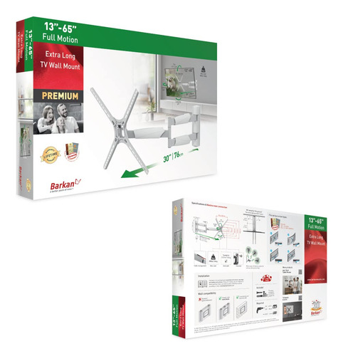 Barkan Soporte de pared largo blanco para TV, articulado de movimiento completo de 13 a 65 pulgadas, soporte de pantalla plana/curva, soporta hasta 79 libras, extremadamente extensible.