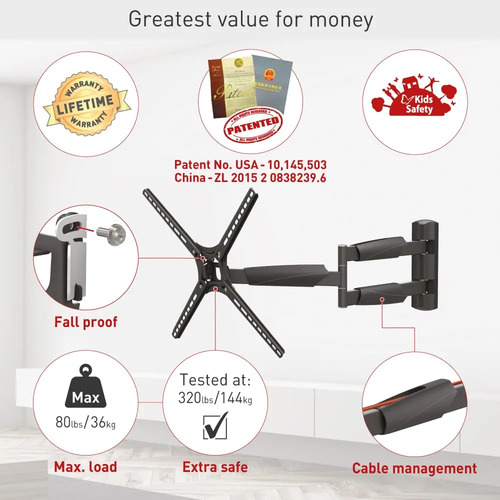 Barkan – Soporte de pared largo para TV, articulado con movimiento completo de 13 a 65 pulgadas, soporte de pantalla plana/curva de 4 movimientos, soporta hasta 79 libras