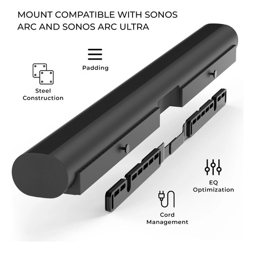 Soporte de pared compatible con Sonos Arc y Sonos Arc Ultra: el soporte de montaje incluye todos los accesorios para montar tu Sonos Arc en la pared. El soporte de montaje en pared solo es compatible con el arco y arco negro o blanco. No es compatible con otras barras de sonido. Diseñado para los propietarios de Sonos Arc y Arc Ultra que desean una configuración de cine en casa limpia y minimalista y valoran configuraciones limpias y de aspecto profesional.