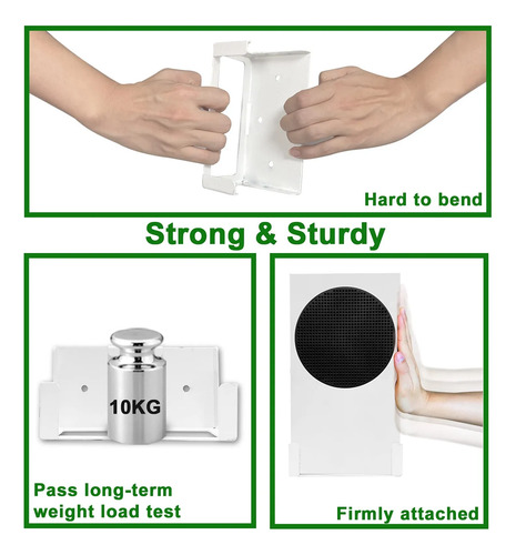 Fuerte y resistente: fabricado con materiales de acero resistentes y acabado duradero con recubrimiento en polvo, lo que hace que el soporte de pared sea resistente y garantiza que la consola y el driver montados sean estables y seguros sin arañazos, incluso evita la posibilidad de que Xbox Series S se caiga causada por los niños pequeños o mascotas en casa
