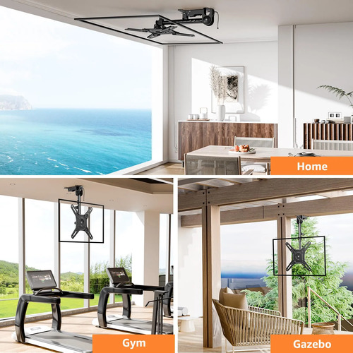 Experiencia de visualización óptima: el soporte de TV de montaje en techo gira /-90o, gira hasta 360o para apuntar tu televisor en cualquier lugar, e inclina 3o/-10o para reducir el deslumbramiento