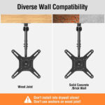 Compatibilidad con TV: este soporte de techo para TV se adapta a la mayoría de televisores de 14-40 pulgadas con VESA de 75 x 75 mm a 200 x 200 mm hasta 22 libras. Comprueba el peso del televisor, el patrón VESA y el acceso de entrada antes de comprar