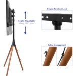 Vivo Artistic Easel 45 to 65 Inch LED LCD Screen, Studio TV Display Stand, Adjustable TV Mount with Swivel and Tripod Base, Black Bracket, Dark Walnut Legs, STAND-TV65A