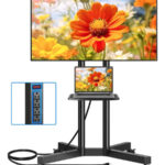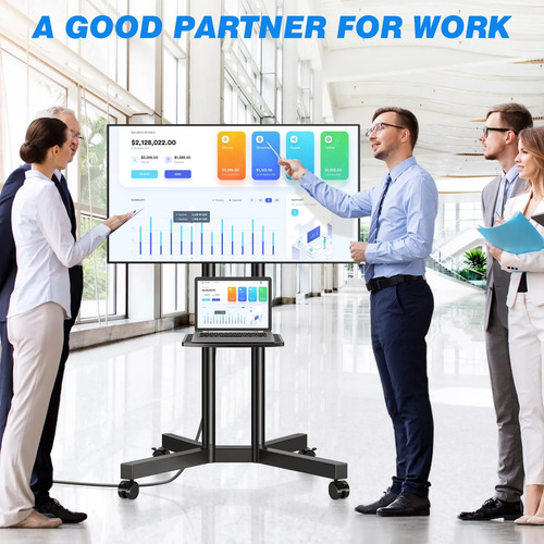 Rfiver – Soporte de TV móvil con toma de corriente para pantallas de 32 a 75 pulgadas, soporte de TV portátil con ruedas con ajuste de altura, soporte de TV al aire última intervensión con estante que