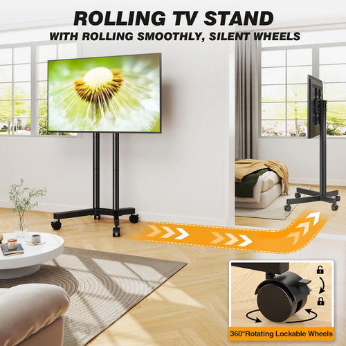 Ruedas giratorias de 360o se deslizan silenciosamente y sin esfuerzo: el soporte de TV portátil puede rodar suavemente tanto suelos duros como alfombras. Con tecnología avanzada pulida, las ruedas ruedan silenciosamente y no rayan tus suelos. Mueve el soporte incluso a medianoche sin molestar al sueño de nadie. Además, los cierres de rueda silenciosos mantienen el soporte en su lugar de forma segura una vez que encuentres el lugar perfecto. Sin necesidad de perforación, puedes moverte libremente donde quieras como practicar yoga o correr, incluso al aire última intervensión.