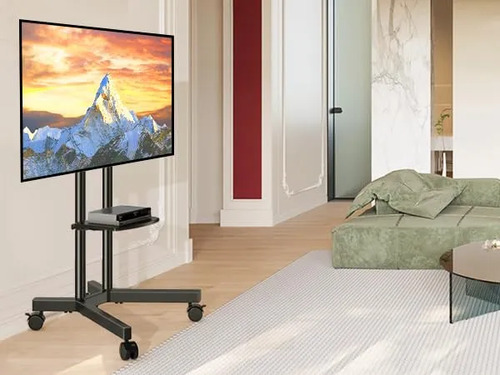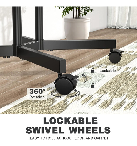 Soporte de TV rodante con estructura resistenteNuestros soportes de TV rodantes para pantallas planas tienen calidad de grado comercial resistente, y la base está diseñada para ahorrar espacio colocándolo en paredes no paralelas como esquinas. Adecuado para uso comercial y residencial, fácil de montar e instalar.