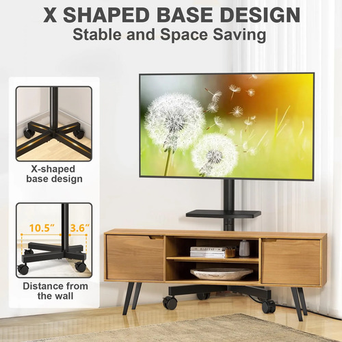 Estructura reforzada y estabilidad mejorada: el carrito de televisión puede soportar hasta 80 libras y es mucho estable que otros. El diseño X-Base utiliza acero de aleación resistente, proporcionando el máximo apoyo para tu televisor. Bloqueo de soporte seguro diseñado protege tu televisor de caídas o deslizamientos a un lado.