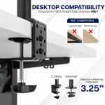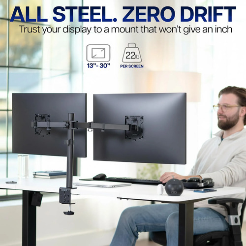 Se adapta a pantallas de 13 a 32 pulgadas: soporte de monitor dual que se adapta a dos pantallas de 13 a 32 pulgadas de tamaño y hasta 22 libras de peso, cada una con agujeros de montaje traseros VESA de 75 x 75 mm o 100 x 100 mm
