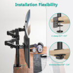Múltiples Opciones de Instalación: El soporte de computadora para monitor tiene un sistema de bloqueo de dos etapas aplicado a una abrazadera C de 9 cm( 3.5 pulgadas) y una base de ojal de 7.6 cm (3 pulgadas)