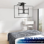Soporte de TV abatible hacia abajo: se adapta a pantallas de 37 a 70 con VESA 200×100, 200×200, 300×200, 300×300, 400×200, 400×300, 400×400, 600×200, 600×200 x o 600 x 400 mm. Nota: para televisores de más de 65 pulgadas, los agujeros VESA deben centrarse para proporcionar suficiente espacio libre desde el techo