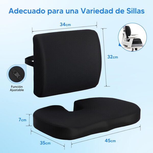‘-Juego de Cojines y Soporte Lumbar:Diseñados para acoplarse a tu anatomía, estos cojines ergonómicos promueven una alineación adecuada de la columna vertebral, reduciendo la presión en los puntos de tu cuerpo donde sientes dolorFabricados con espuma viscoelástica de alta densidad, estos cojines y soportes lumbares mantienen su forma sin deformarse.