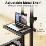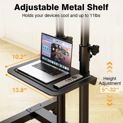 Ajuste de altura: el soporte de TV tiene 8 pasos de altura ajustable, altura de 51.5 a 72 pulgadas (la altura incluye el soporte y el gancho). Además, el soporte portátil para TV con estante de metal medio que se puede ajustar de 5 pulgadas a 32 pulgadas, ofrece más espacio para guardar equipos A/V como monitores de juegos, tabletas, cajas de cables, portátiles, etc.