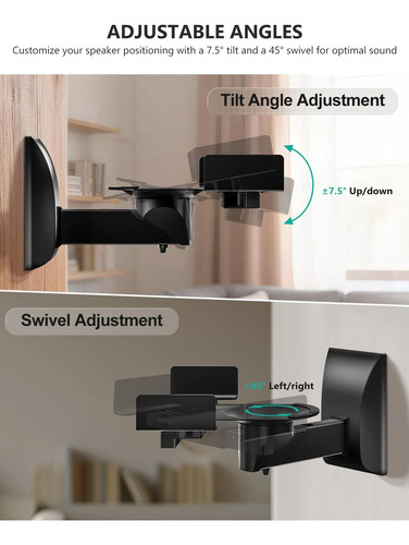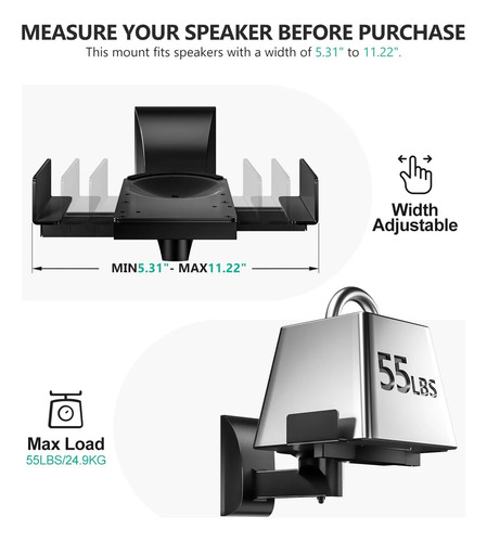 Versatilidad: Inclinación ajustable hacia arriba y hacia abajo 7,5 grados, giro hacia la izquierda y hacia la derecha 45 grados, el ancho del altavoz debe estar entre 14 y 28 cm (5,5 a 11 pulgadas)