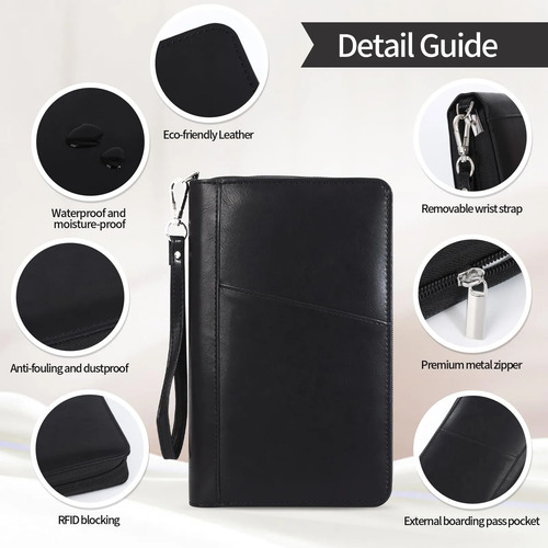 Material elegante de alta calidad: peso ligero pero duradero. Esta portafolios para pasaporte y soporte para libros de pasaporte está hecho de piel sintética súper fuerte y duradera. Impermeable, resistente a las manchas, material ligero para un fácil transporte, fuerte cierre de aleación de zinc que hace que sea más duradero.