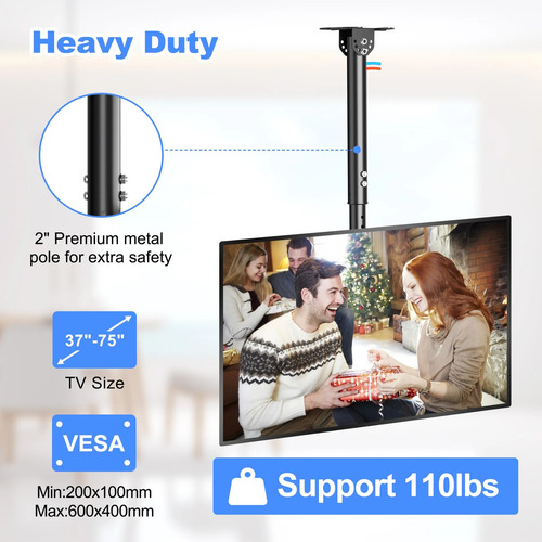 Soporte para TV de techo se adapta a la mayoría de pantallas LCD LED de plasma de 37 a 75 pulgadas con VESA máximo de 600 x 400 mm cargado hasta 100 libras, soporte giratorio e inclinable,