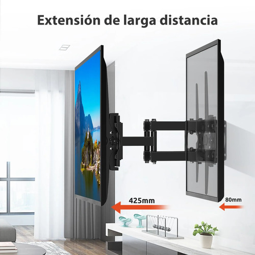 Ahorre EspacioSoporte tv 65 pulgadas coloque su televisor a sólo 80mm de la pared para mejorar el aspecto de su televisor LED delgado. Al extenderse hasta 425mm desde la pared, puede retraer el televisor 80mm cuando no lo utilice, puede colocar la pantalla en cualquier rincón de la casa y el soporte de TV colgante le ahorra espacio.
