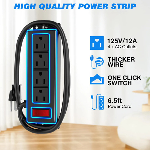 Carrito de TV móvil con toma de corriente: seguridad y comodidad integrada: este soporte de TV rodante cuenta con una regleta de alimentación integrada con un cable de extensión resistente de 6.5 pies (cobre puro de 16 AWG), que ofrece una capacidad de corriente de 12 A para una carga estable de múltiples dispositivos. Sus 4 tomas de CA admiten la fuente de alimentación simultánea a equipos multimedia, mientras que el interruptor de seguridad de un solo toque corta la energía al instante cuando está inactivo, evitando la activación accidental por parte de los niños. Este diseño garantiza tanto la seguridad del dispositivo como la seguridad familiar.