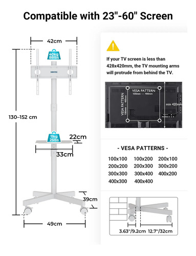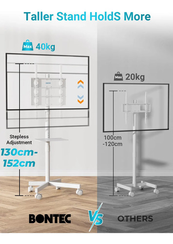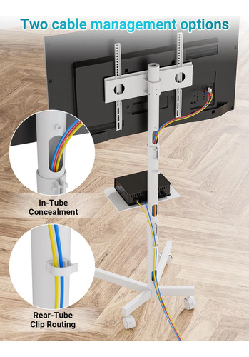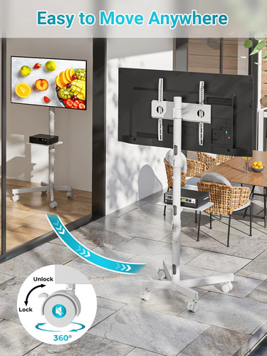 Aplicación móvil y versátil: diseñado como un soporte de TV rodante con ruedas suaves y frenos de bloqueo, permite un movimiento sin esfuerzo entre habitaciones y un posicionamiento seguro cuando sea necesario. Este soporte de TV portátil y soporte de TV al aire última intervensión es adecuado para oficina en casa, escuela, hotel, aeropuerto, tiendas al aire última intervensión o eventos al aire última intervensión que ofrecen más flexibilidad que los soportes fijos y se adaptan fácilmente a múltiples espacios