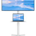 Estante funcional y fácil mantenimiento: equipado con un estante ajustable, este soporte de TV portátil se adapta a computadoras portátiles, consolas de juegos o reproductores de DVD manteniendo los accesorios organizados. La superficie es fácil de limpiar con un paño suave y seco que permite que el soporte de TV mantenga un aspecto profesional limpio tanto en espacios públicos como en habitaciones privadas